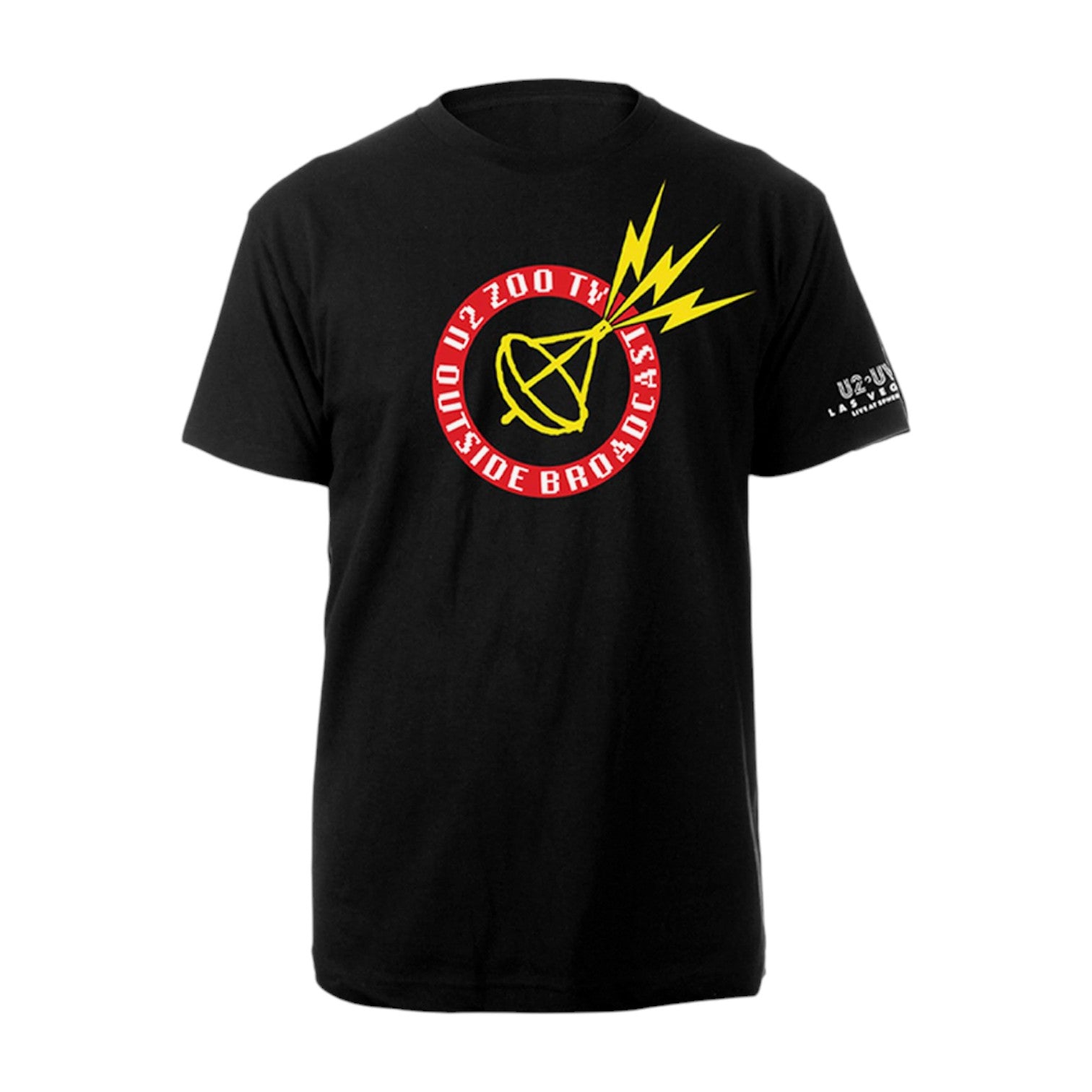 The Zoo Station Outside Broadcast design is printed on a black, 100% cotton socially responsibly sourced premium unisex tee.